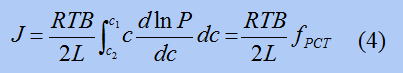 In this equation, J corresponds to the flow rate and is called "flux". c1is the concentration of the more concentrated side in the metal, and c2 is the concentration of the less concentrated side. This concentration is called "concentration". L is the thickness of the membrane. The thinner the membrane, the easier it is for the fluid to flow. This equation is derived from "Fick's law.