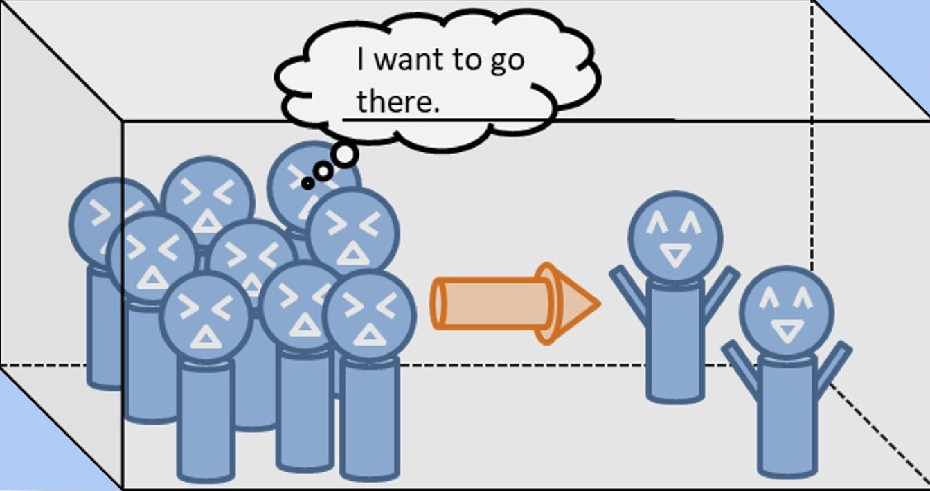 At this point, the more crowded the space on the left, or the more empty the space on the right, the more you will want to move to the right. This can be expressed as the following formula.