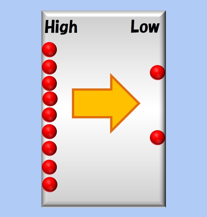 Hydrogen also diffuses from the crowded side to the empty side in the same way.