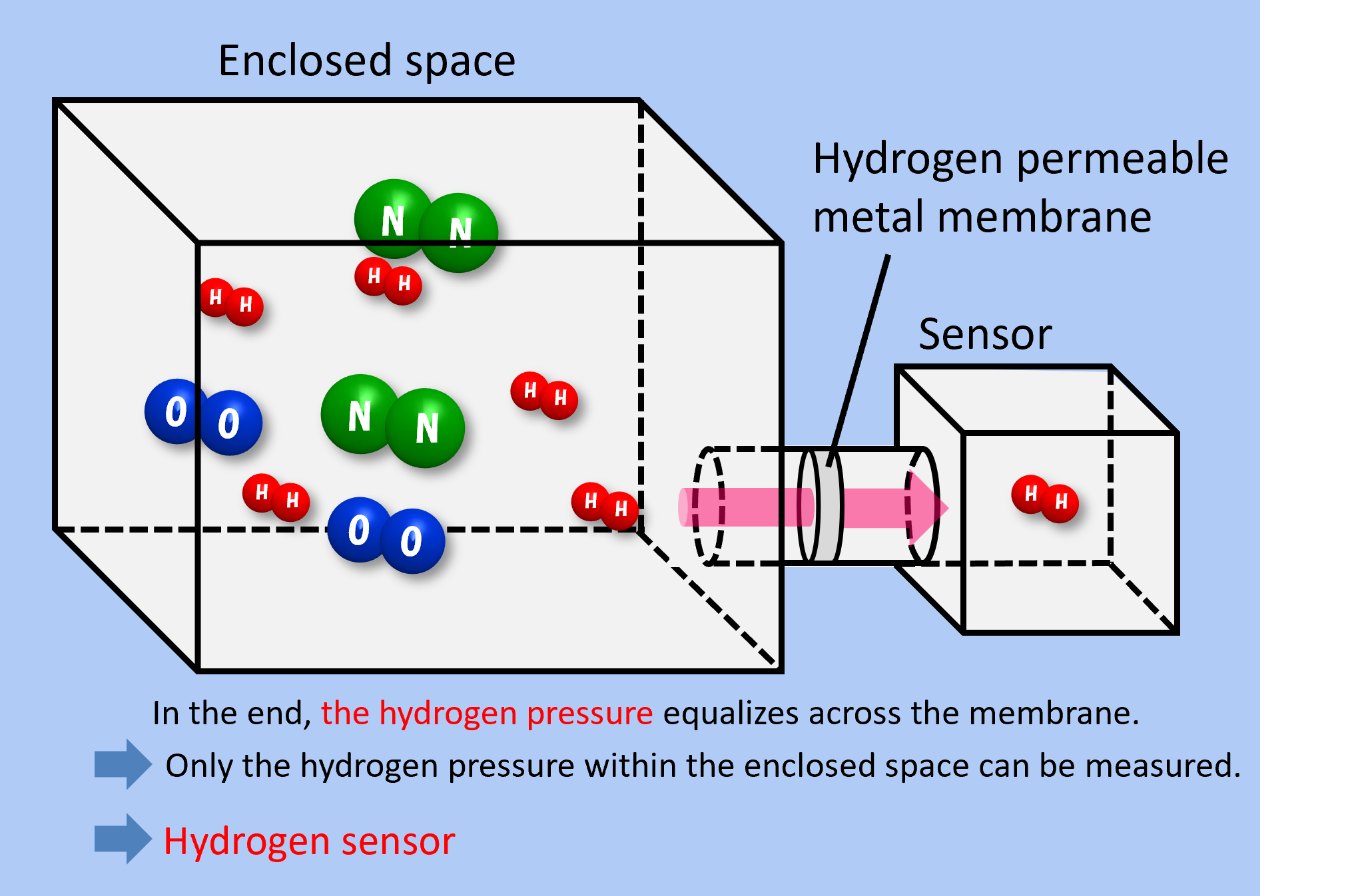 Using a hydrogen permeable metal membrane allows us to detect only hydrogen, regardless of other gases present, making it suitable for use as a “hydrogen sensor.”