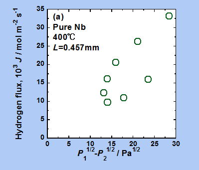 この図は実際にNb(ニオブ)という金属膜で水素を透過させたときの実験結果です。